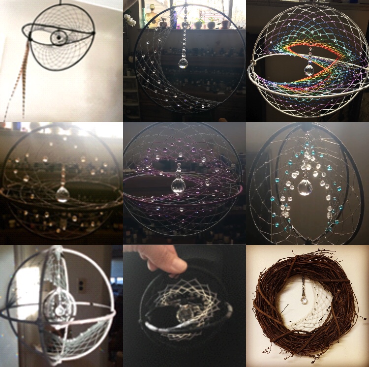My theory is: Every moment, we each weave our thoughts into this great tapestry we call “Life.” I was inspired to create my Orbs and Dreamcatchers as a tools to help people to focus and manifest their intentions and their prayers. As the Sun’s rays cast upon them, spraying rainbows about the space, your prayers and intentions are dispersed in all directions.